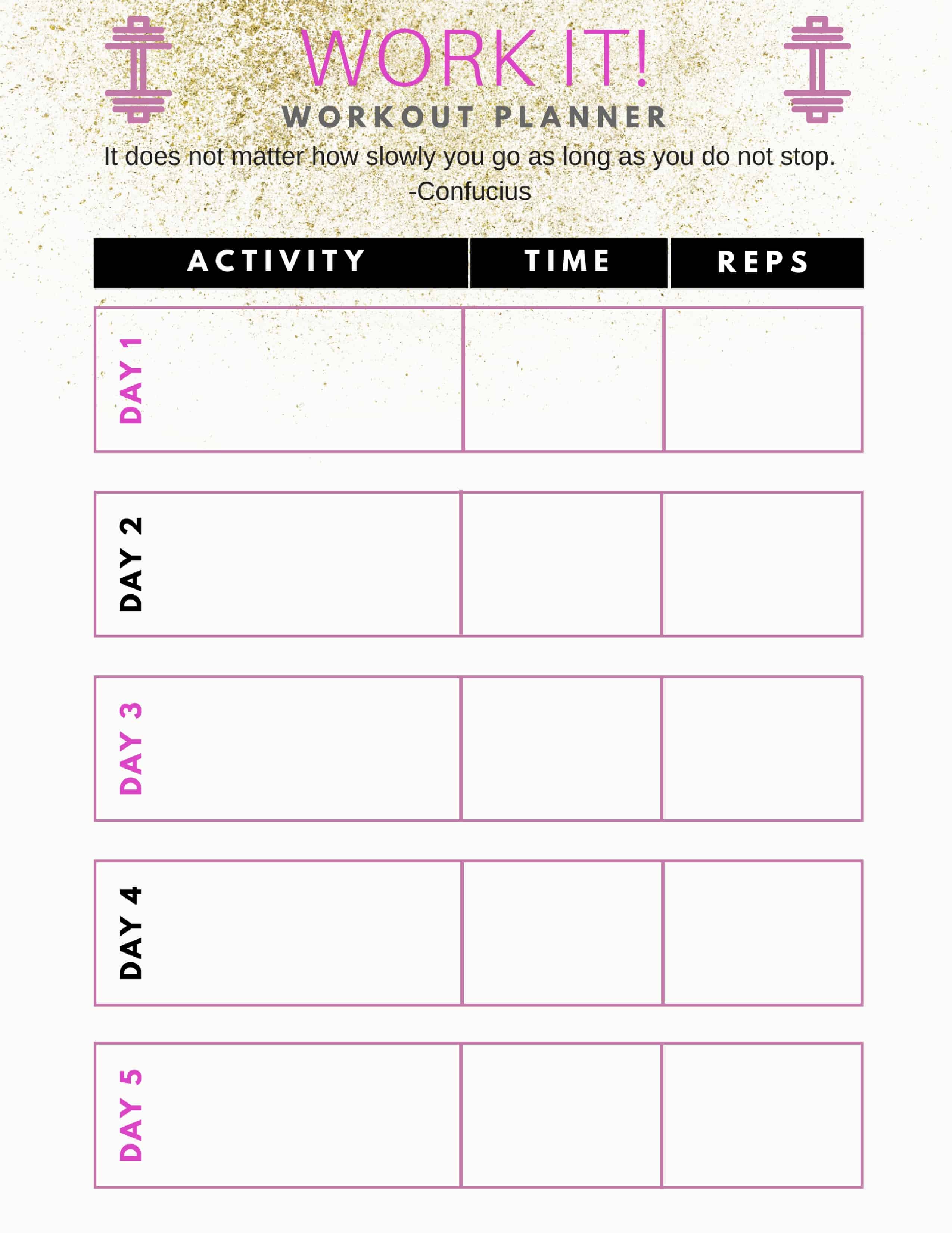 Workout Planner Free Printable at Arlene Blake blog